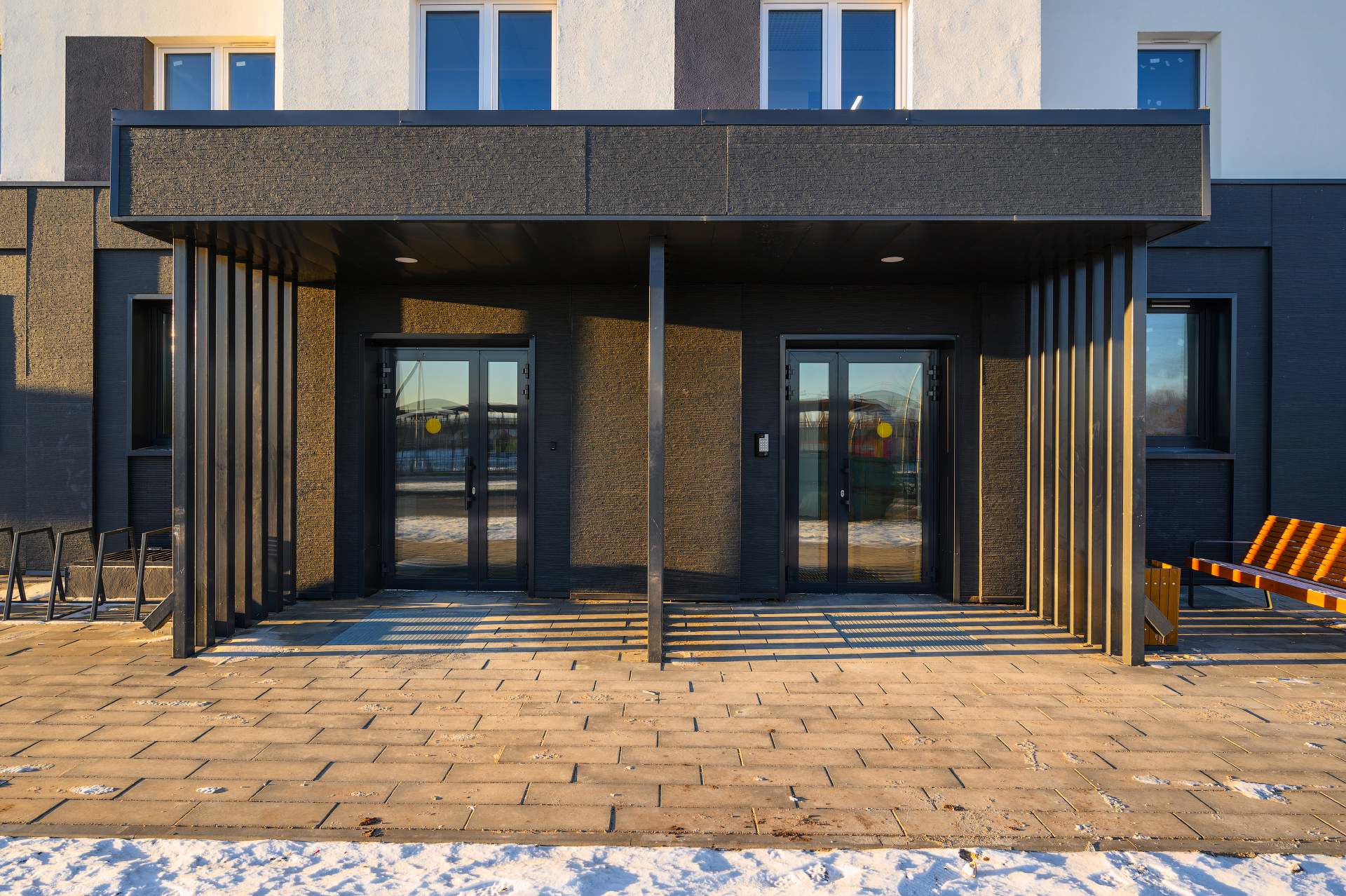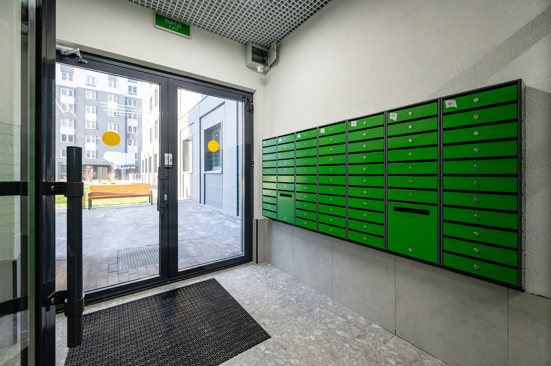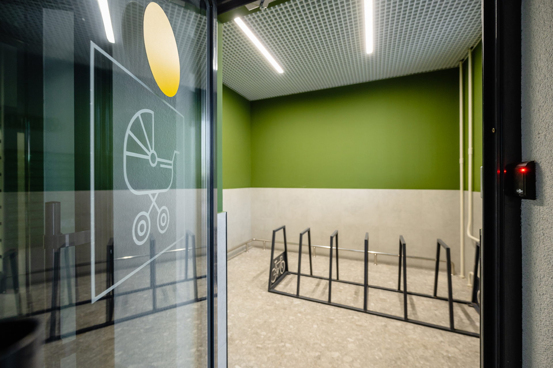 ПодъездыВ подъезд ведут прозрачные входные группы. Вход реализован с уровня земли, что обеспечивает безбарьерный доступ в дом. Все подъезды будут отделаны по дизайн-проекту с использование качественных и долговечных материалов. Для удобства, выход из подъезда будет на улицу и во двор. Для хранения колясок и велосипедов мы предусмотрели колясочные на первых этажах подъездов. В каждом подъезде мы установим два лифта: пассажирский и грузовой.