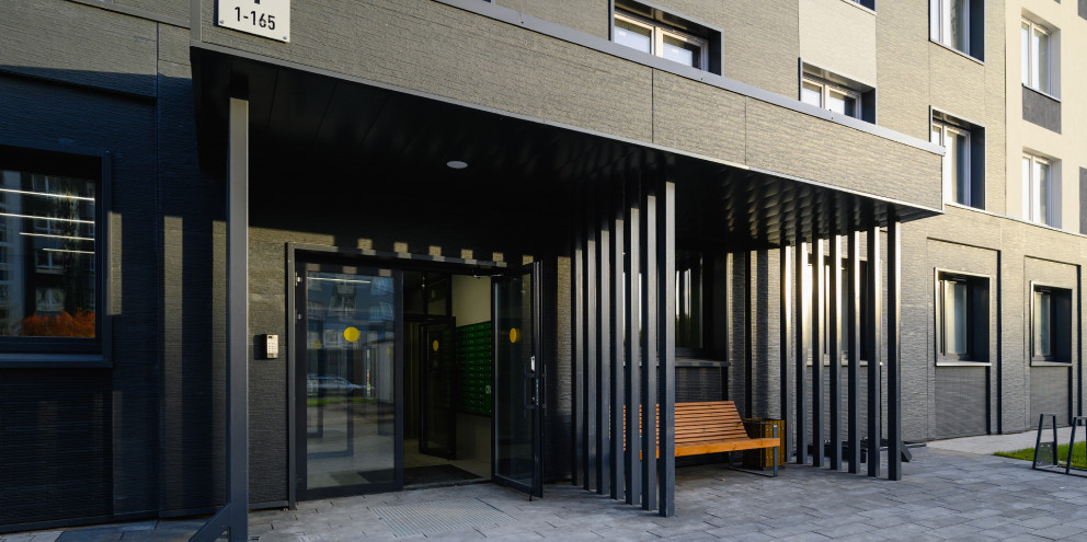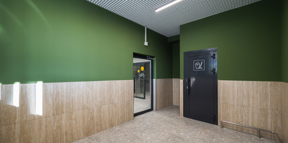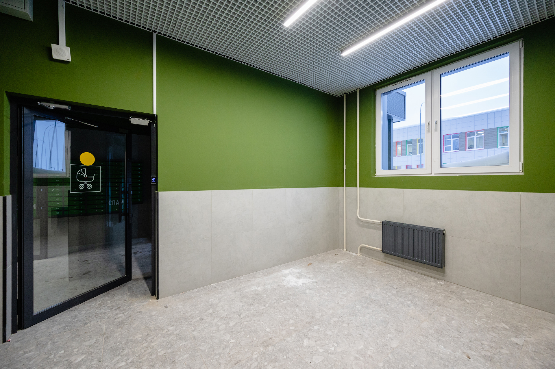ПодъездыВход в секции реализован с уровня земли без ступеней или пандусов: это ежедневный комфорт для родителей с детскими колясками или при выгрузке стройматериалов, а ещё пассивная мера безопасности, которая исключает травмы, характерные при спуске с лестниц или подъемов. Все подъезды выполнены по дизайн-проекту с использование качественных и долговечных материалов. Для удобства выход из подъезда будет на улицу и во двор. Для хранения колясок и велосипедов мы предусмотрели колясочные на первых этажах каждой секции — это экономия квадратных метров в квартире. В каждом подъезде по два вместительных лифта — чтобы переезд и повседневные дела проходили комфортно и быстро.