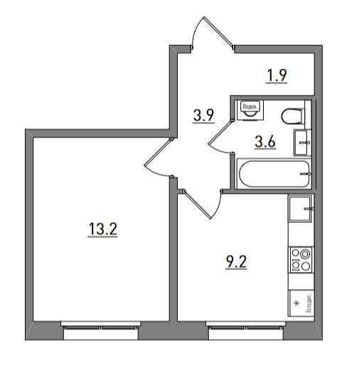 1-комнатная, 31.8 м²