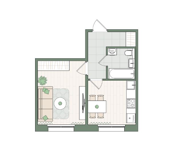 1-комнатная, 40.6 м²