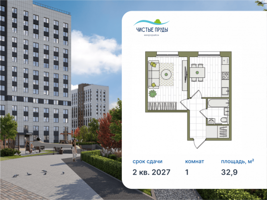 Общая площадь32,9 м²