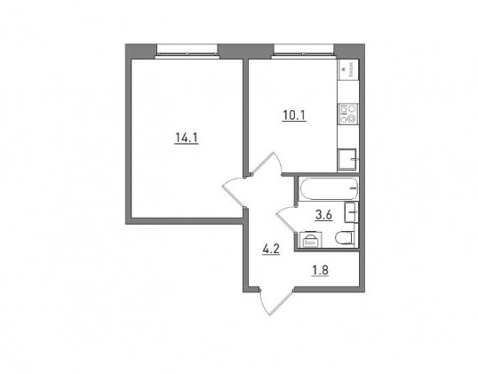 Площадь комнат14,1 м²