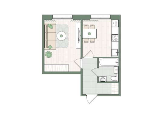 1-комнатная, 38.5 м²