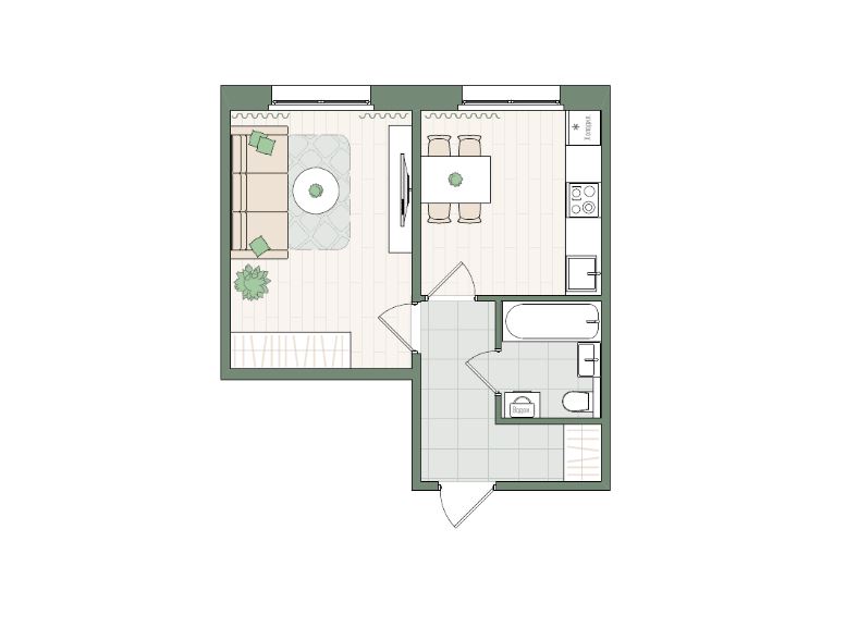 1-комнатная, 40.6 м²