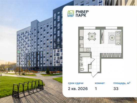 - № 734 Проект РИВЕР ПАРК Отделка Без отделки Этаж 16 Скидка до -30% на чистовую отделку Семейная ипотека от 3,5% Базовая ипотека от 15,7%