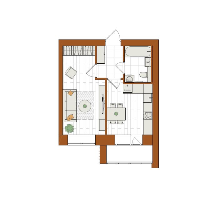 1-комнатная, 40.6 м²