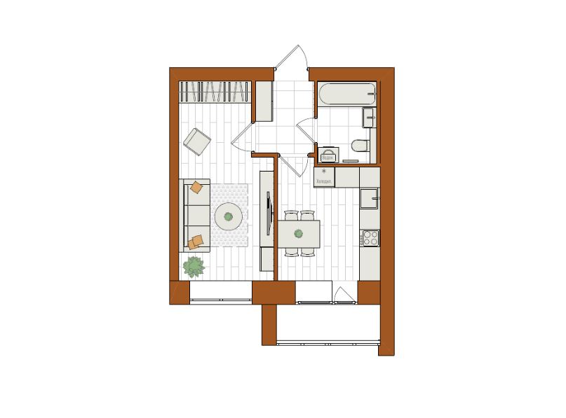 1-комнатная, 35 м²