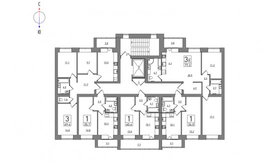 1-комнатная, 40.4 м²