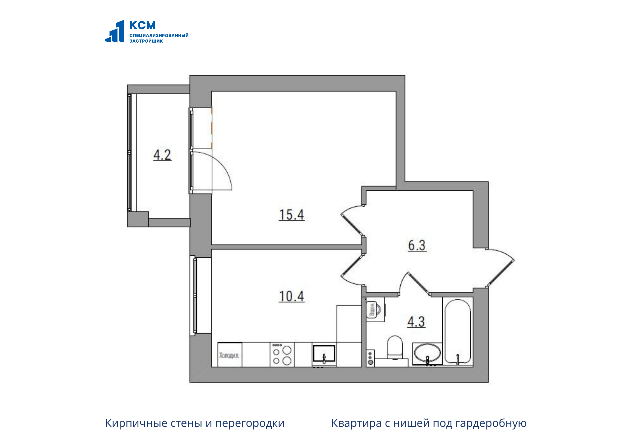 Площадь комнат15,4 м²