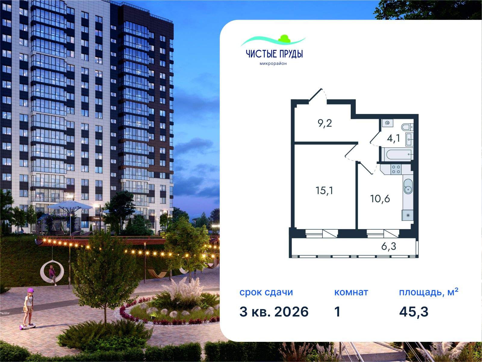 - № 1 Проект Чистые пруды Отделка Без отделки Этаж 1 Скидка до -30% на чистовую отделку Семейная ипотека от 3,5% Базовая ипотека от 15,7%