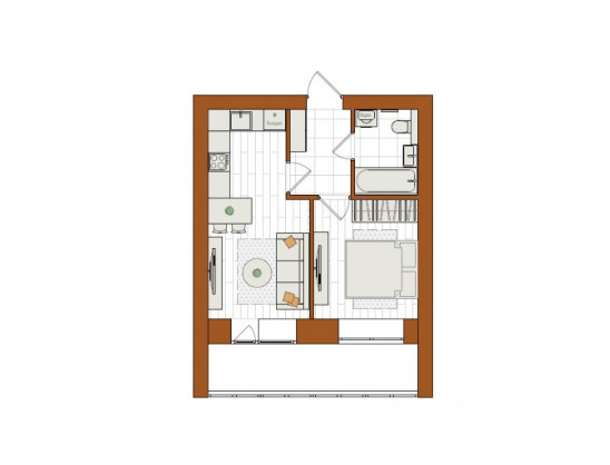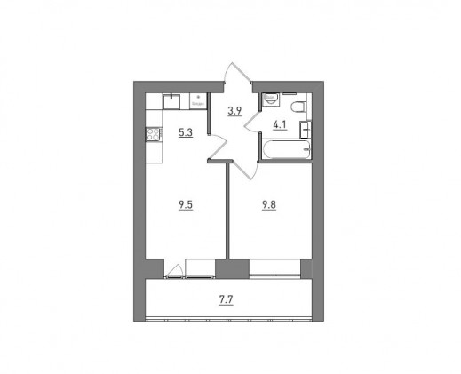 Евро 2-комнатная, 40.3 м²