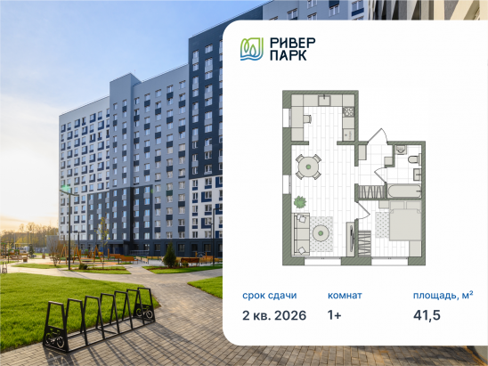 - № 605 Проект РИВЕР ПАРК Отделка Без отделки Этаж 1 Квартирный обмен Семейная ипотека от 3,5% Базовая ипотека от 15,7%