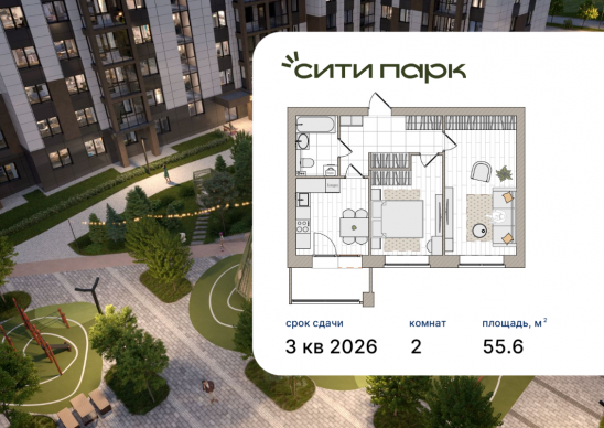 2-комнатная, 55.6 м²