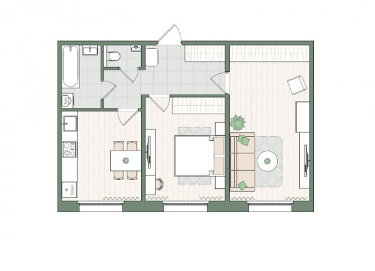 2-комнатная, 56.9 м²