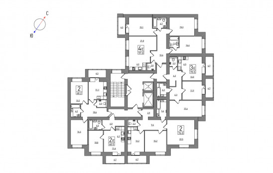2-комнатная, 60.2 м²