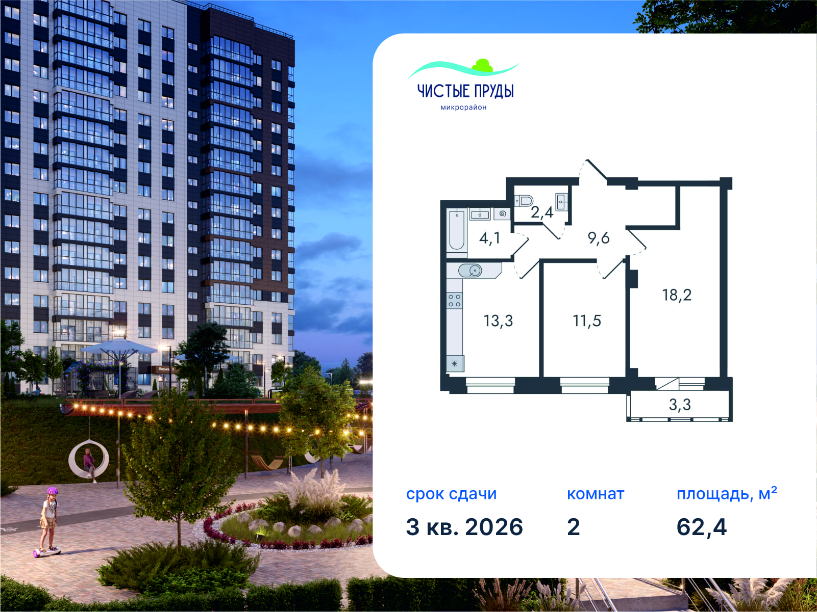 2-комнатная, 62.4 м²
