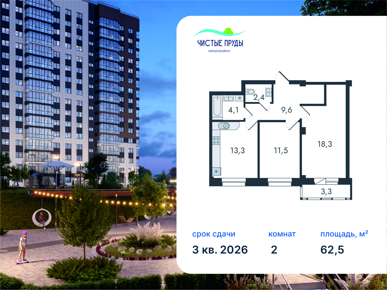 - № 262 Проект Чистые пруды Отделка Без отделки Этаж 15 Скидка до -30% на чистовую отделку Семейная ипотека от 3,5% Базовая ипотека от 15,7%
