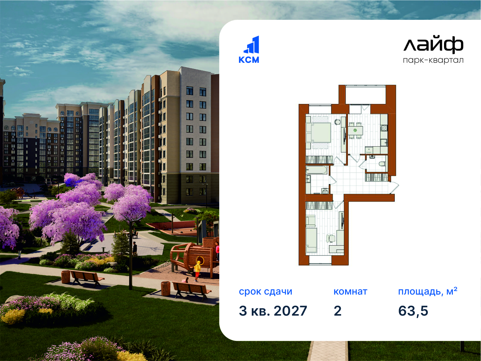 2-комнатная, 63.5 м²