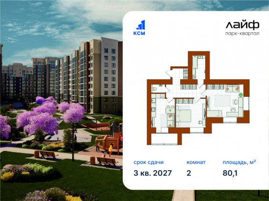2-комнатная, 80.1 м²