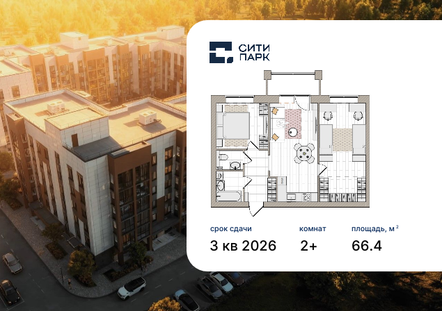 - № 74 Проект Сити Парк Отделка Без отделки Этаж 6 Скидка до -30% на чистовую отделку Семейная ипотека от 3,5% Базовая ипотека от 15,7%