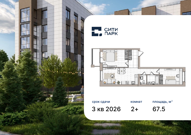 - № 18 Проект Сити Парк Отделка Без отделки Этаж 3 Скидка до -30% на чистовую отделку Семейная ипотека от 3,5% Базовая ипотека от 15,7%