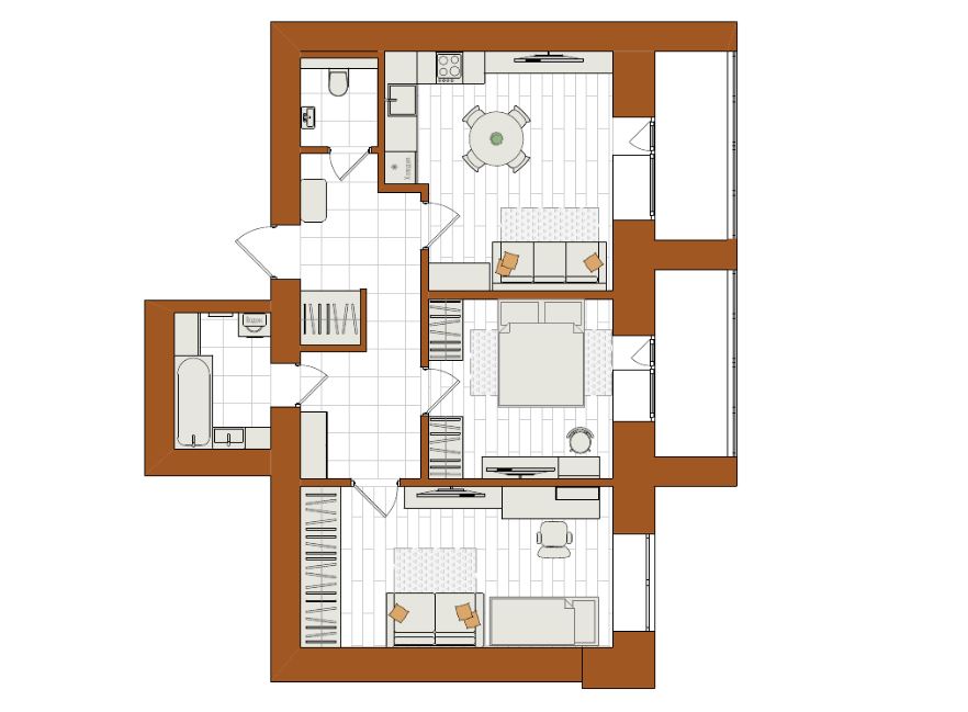 Евро 3-комнатная, 75.5 м²