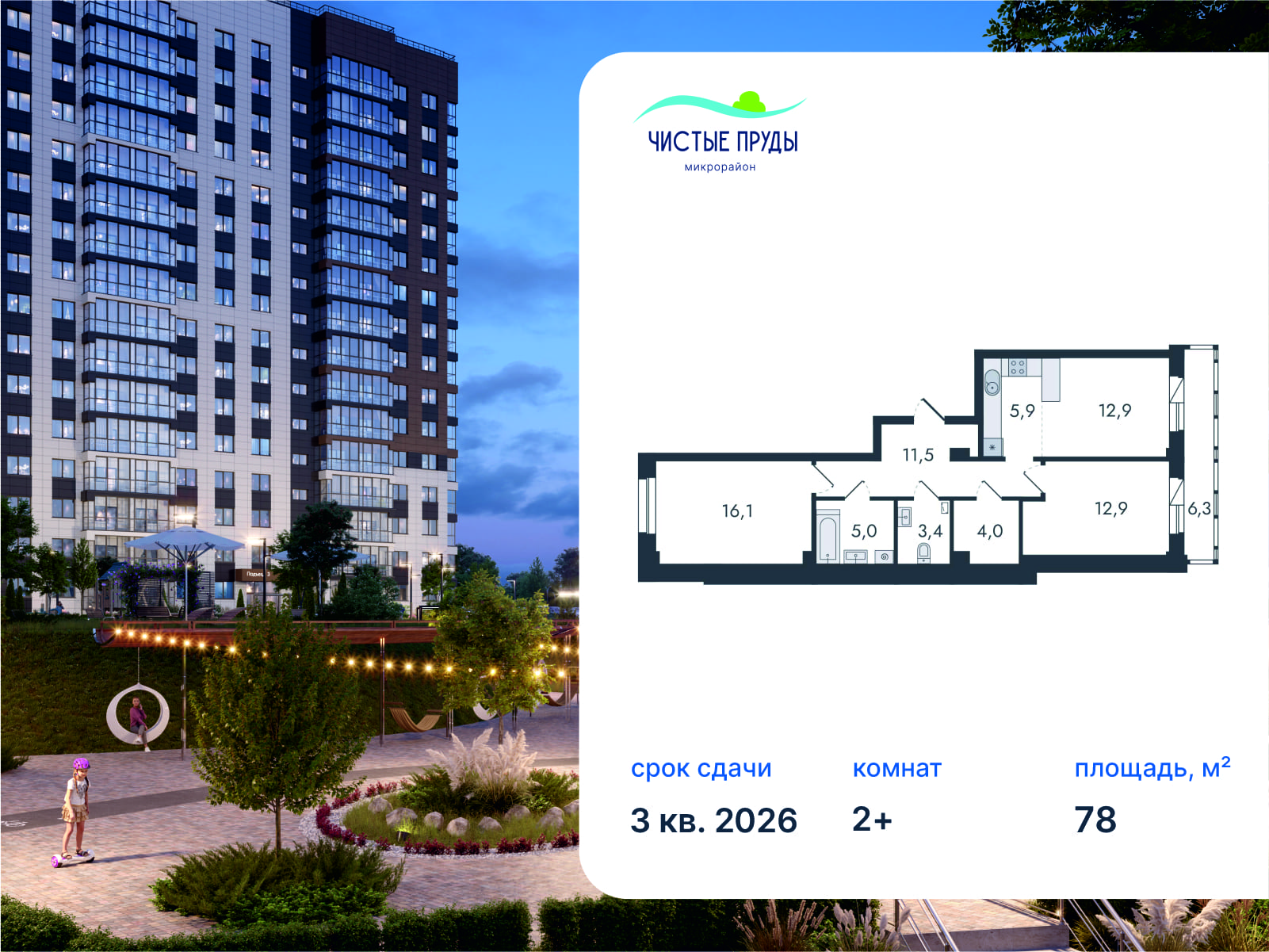 - № 3 Проект Чистые пруды Отделка Без отделки Этаж 1 Скидка до -30% на чистовую отделку Семейная ипотека от 3,5% Базовая ипотека от 15,7%