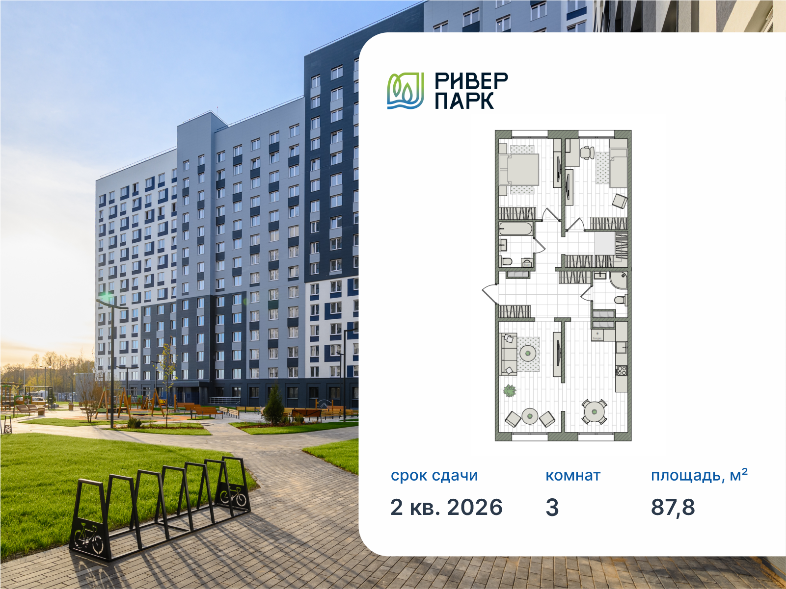 - № 610 Проект РИВЕР ПАРК Отделка Квартира с отделкой Этаж 2 Скидка до -30% на чистовую отделку Семейная ипотека от 3,5% Базовая ипотека от 15,7%
