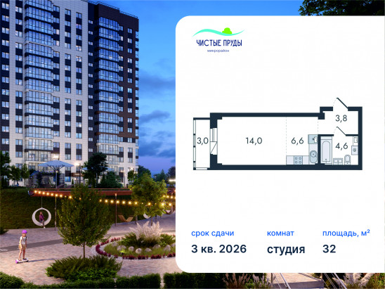 Студия, 32 м²