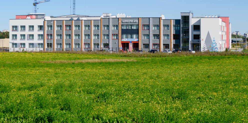 Новый район. Школа, детсад, всякие магазины. Дома различной конфигурации