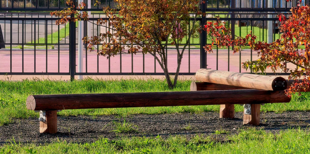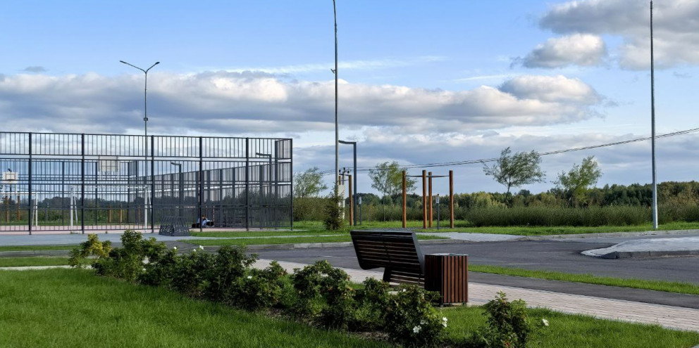 Спортивное поле для игр в баскетбол или минифутбол, зона с тренаржёрами и полоса препятствий для любителей активного отдыхаСпортплощадка