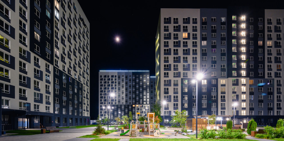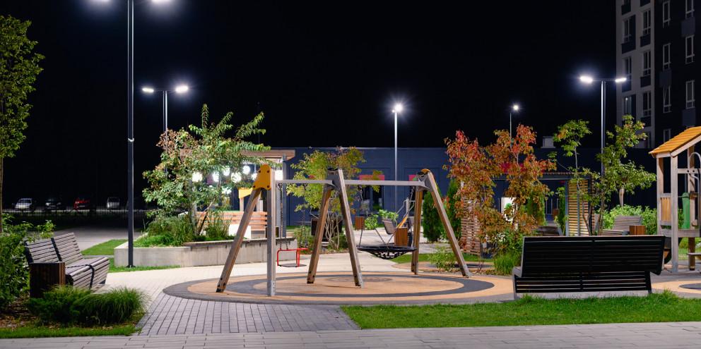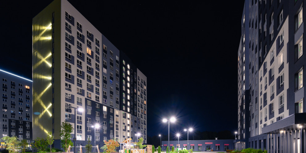 Обеспечивает дополнительное освещение придомовой территории и подчеркивает архитектурный стиль ЖК.Архитектурная подсветка